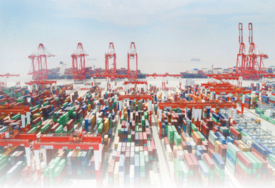 洋山深水港四期无人码头集装箱堆场。新华社记者 方喆 摄