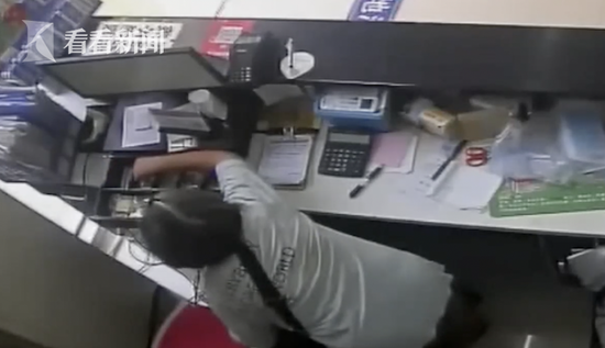 在画面中我们看见,一名身穿白色上衣的女性,弓着腰从药房门口走到了收银台里,先拿右手拧动收银柜钥匙,似乎右手拧动并没有打开收银柜,随后她换左手拧,很快放着几千元现金的收银柜被她打开了。 打开收银柜后可以看见每个格子都放着现金,这名小偷开始从左至右拿钱,据店员介绍,最开始,这名小偷拿的是一百元,五十元大面额的钱。 在拿了最上面格子里的钱后,这名小偷轻轻的关上了收银柜准备离开,在停留了几秒钟之后,可能觉得自己盗窃过程很顺利,并没有被发现,她转身再次打开了收银柜,拿走了里面剩余的小面额现金。