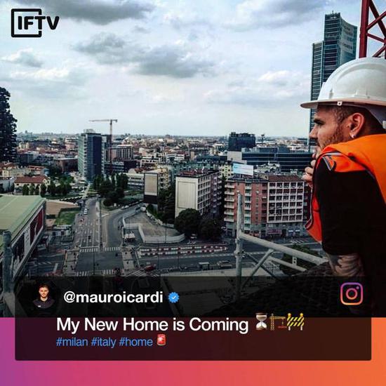 直播吧8月21日讯 伊卡尔迪在个人ins中晒照表示自己的“新家即将到来”,同时在标签中加上了“米兰和家”等标签。