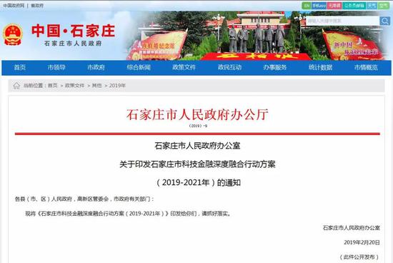 石家庄市将打造科技金融综合服务机构。在石家庄高新区打造市级科技金融服务中心,支持县(市、区)科技管理部门设立公益性科技金融综合服务机构,建立市、县(市、区)联动服务体系。鼓励将综合服务机构设于重点科技园区,导入科技信贷、创投、风投、担保、风险池、路演、中介等服务模式,形成面向科技创新创业全过程的金融服务链。并配合河北省科技金融试点工作,支持石家庄高新区作为省级科技金融试点地区。