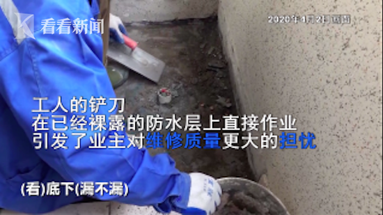石女士对这样的维修表示疑问,一是自从交房以来,她一直报修从未有人联系维修,去年12月承诺一个月修好今年1月份找物业还说是先登记,怎么突然在疫情期间大范围开始维修?
