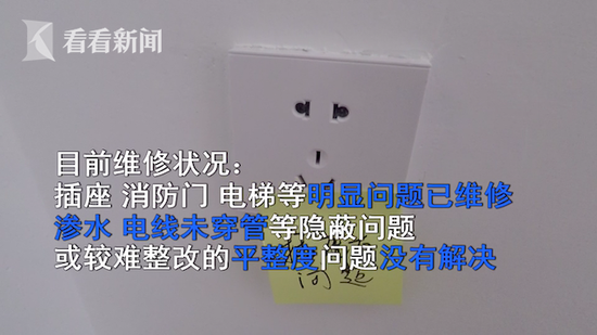记者又随访了另外两户已经交房的人家,7号楼的石女士家验房不合格处140多处;6号楼的王女士说:“每家都有问题。”但是此前验房师标注过的不合格的插座这次检查也是好的,可见维修并不仅仅是针对罗先生家的。