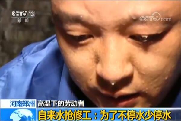 郑州自来水公司 张威:一般要停水都是半个小时到四十分钟,停水时间越长,用户用水的时间都得缩短,大热天的停水受不了,谁也不想到这么热的天突然间没水了,并且我们在井里面也很热,速度快点能早点上去凉快。